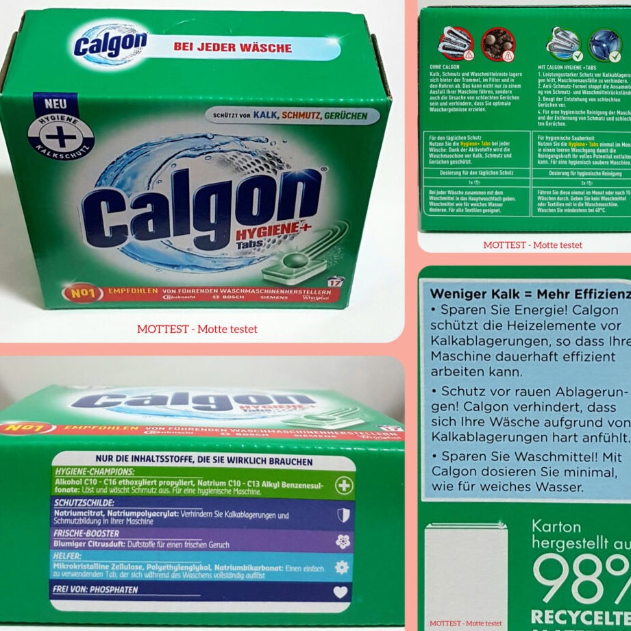 Calgon verspricht, hartes Wasser zu enthärten und Kalkablagerungen zu verhindern. Laut Herstellerangaben soll es die Bildung von Kalkrückständen in Waschmaschinen und Geschirrspülern reduzieren und somit die Lebensdauer der Geräte verlängern. Zudem soll es für saubere und weiche Wäsche sorgen.