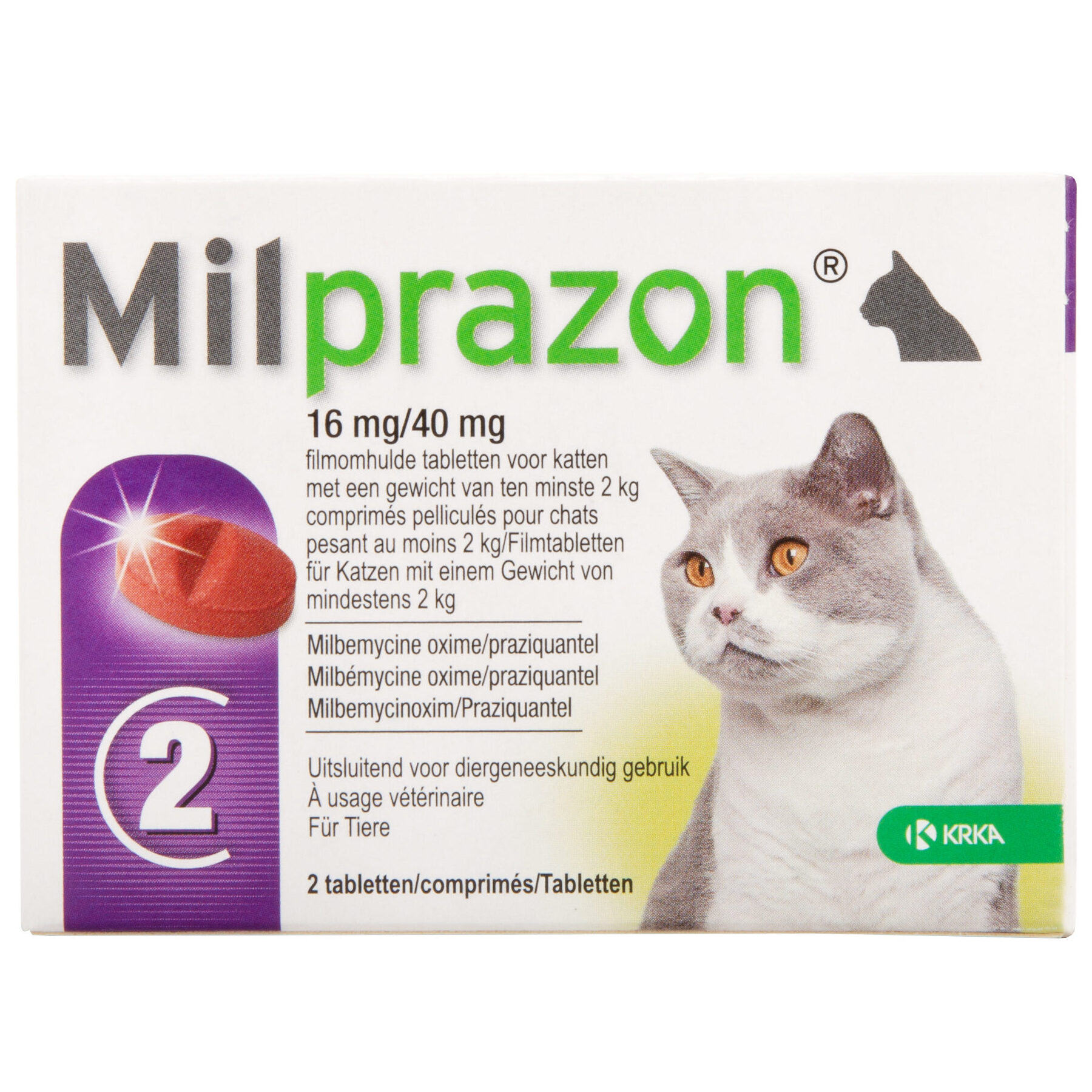- Katzen mit einem Gewicht von 1 bis 2 kg erhalten eine Tablette mit 5 mg Milbemycinoxim und 50 mg Praziquantel.