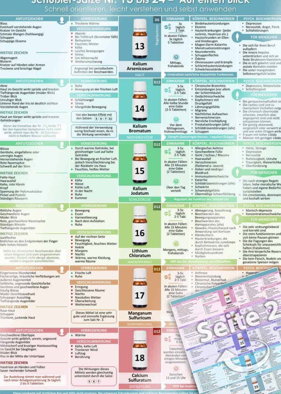 Es gibt 12 verschiedene Schüßler-Salze, die jeweils für unterschiedliche Beschwerden und Symptome geeignet sind. Informieren Sie sich über die Anwendungsbereiche der einzelnen Salze und wählen Sie das passende Salz entsprechend Ihrer Beschwerden aus.